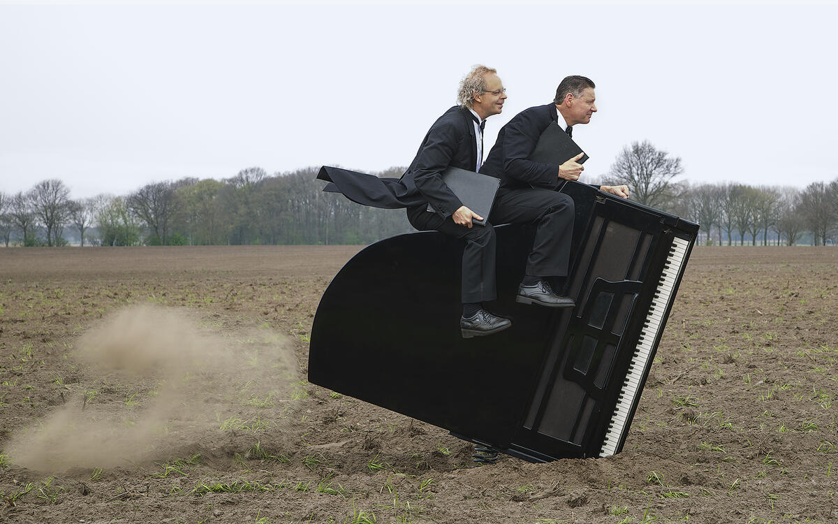 In "The Flying Concert" verblüffen die Herren erneut mit ihren genialen Requisiten: Ein Klavierflügel wird zum fliegenden Holländer während der Schlagzeuger durch eine altmodische Schablonenmaschine ersetzt wird. "Was die Besucher zu hören und zu sehen kriegen, springt in eine völlig neue Dimension; von klassischer Musik zu komödiantischen Kabarett und wieder zurück". (Badisches Tageblatt)